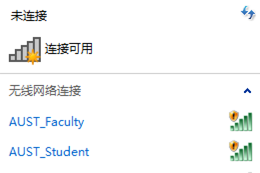 1.校园内有两个无线网络信号(SSID),分别为AUST_Faculty和AUST_Student,如图1-1: