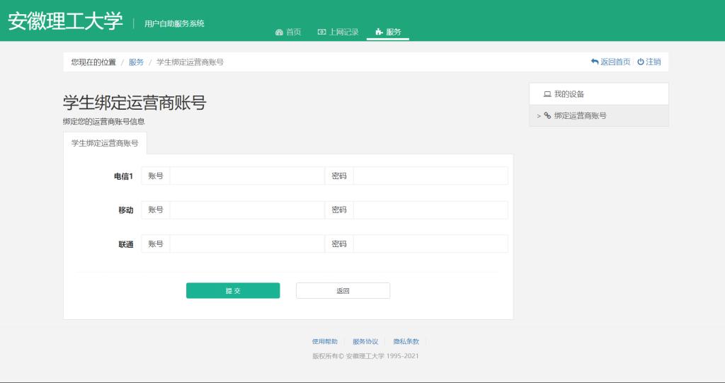 我校针对网络用户默认开启WLAN无感知认证(即使用WLAN方式登录网络时,系统自动将用户账户与用户终端MAC绑定,以后用户只需连接WLAN,系统自动完成认证登录,实现无感知漫游)。系统最多可以绑定3台终端设备。无感知认证的开启和关闭、用户终端的解除绑定和绑定运营商账号,请访问https://authserver.aust.edu.cn/authserver/login?service=http%3A%2F%2Fxgmm.aust.edu.cn%2FSelf%2Fsso_login,登录用户名密码与统一身份认证账户相同。