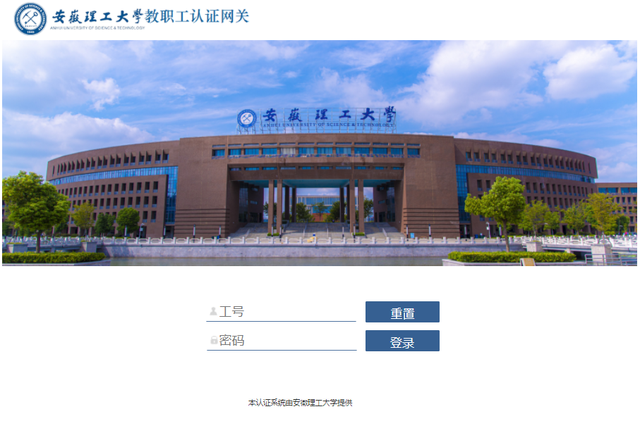 2.教职工用户请连接AUST_Faculty,使用浏览器打开任意网址,将自动跳转至网络认证页面(http://gate.aust.edu.cn),输入正确的工号与密码(与有线密码相同)后,点击登录按钮,即可连接互联网,笔记本终端认证页面如图1-2: