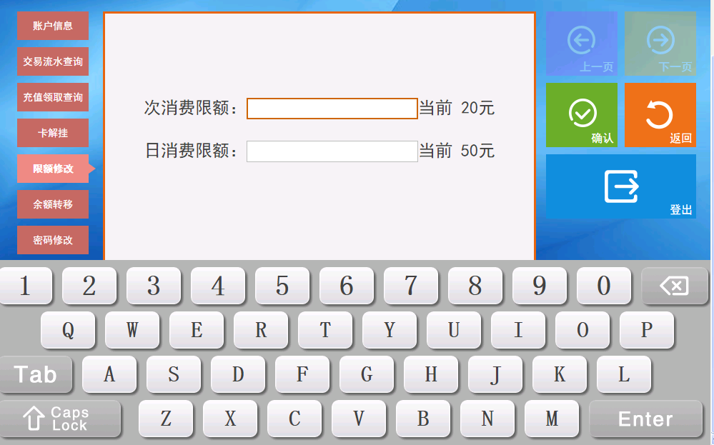 点击“限额修改”,可修改校园卡的每日、每次消费限额。如下图: