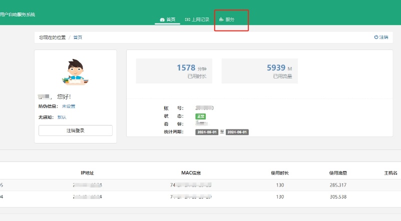 2.登录后,点击“服务”栏目,进入服务栏目。