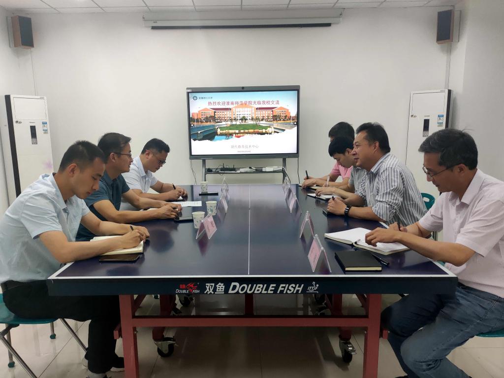6月14日上午,淮南师范学院信息化处程业红副处长一行来校调研网络运营商合作与信息化建设工作,受到了现代教育技术中心主任王一兵的热情接待。